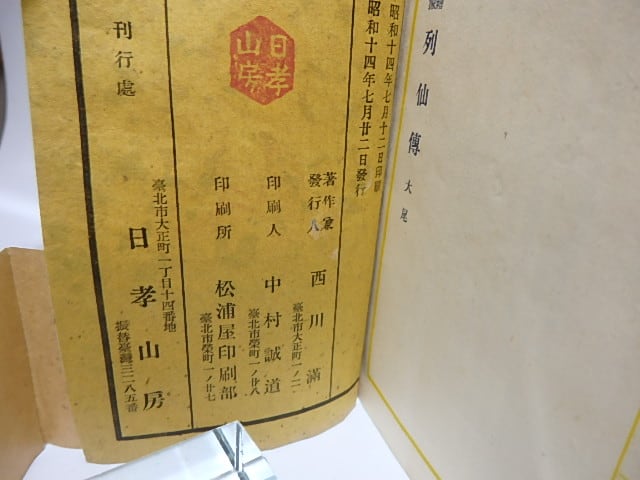 1939 ( 昭和14年 ) 日孝山房(台湾発行) 小型本 45p (繪像 列仙傅 列仙傳) (目録番号:-)
