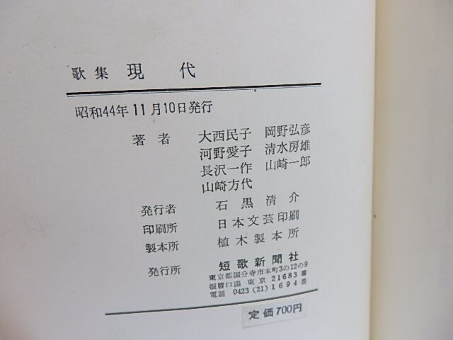 歌集 現代 (合同歌集) / 大西民子 岡野弘彦 河野愛子 清水房雄 長沢一作 山崎一郎 山崎方代 [28522]