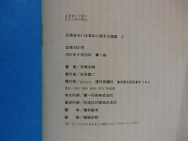 犯罪あるいは革命に関する諸章 初函帯 / 平岡正明 横尾忠則装 [28967]
