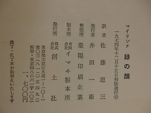 緑の顔 / グスタフ・マイリンク 佐藤恵三訳 [29112]
