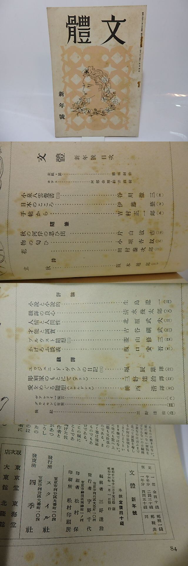 1939 ( 昭和14年 ) スタイル社 A5判 四季社発売 藤田嗣治表紙 阿部金剛・松井直樹カット 坂口安吾「かげろふ談義」 堀辰雄訳「ユウジェニ・ド・ゲランの日記3」 他 (文體) (目録番号:-)
