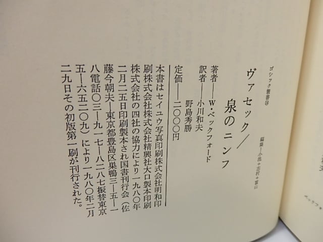 ヴァセック 泉のニンフ ゴシック叢書14 / W・ベックフォード 小川和夫・野島秀勝訳 [27175]