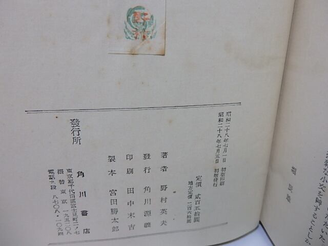 1953 ( 昭和28年 ) 角川書店 四六枡形 (目録番号:-)