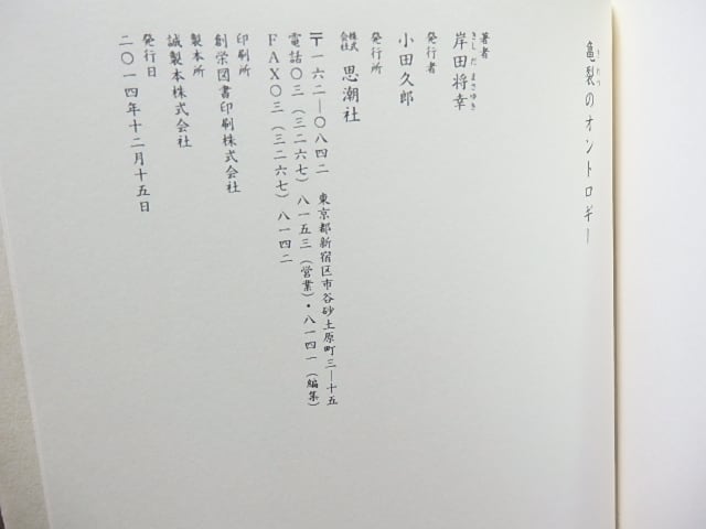 ![亀裂のオントロギー / 岸田将幸 [27736]](https://baseec-img-mng.akamaized.net/images/item/origin/0b51f8e6958e57783068387726f0ec5e.jpg?imformat=generic)