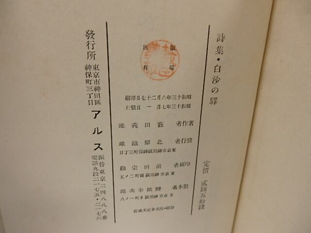 1938 ( 昭和13年 ) アルス 四六判 北原白秋序 第一詩集 (目録番号:-)