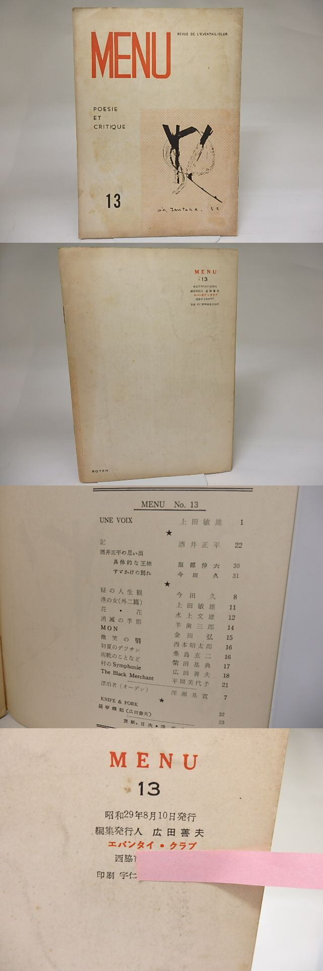 1954 ( 昭和29年 ) エバンタイ・クラブ B5判 兵庫県西脇市発行 広田善夫・今田久・水上文雄・羊歯三郎・上田敏夫・深瀬基寛(オーデン訳詩) 他 (目録番号:-)
