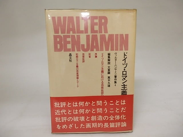 ![ドイツ・ロマン主義 ヴァルター・ベンヤミン著作集4 / ヴァルター・ベンヤミン 大峯顕他編集解説 [20506]](https://baseec-img-mng.akamaized.net/images/item/origin/b6b60854c51951f8fde41cb806bdd285.jpg?imformat=generic)