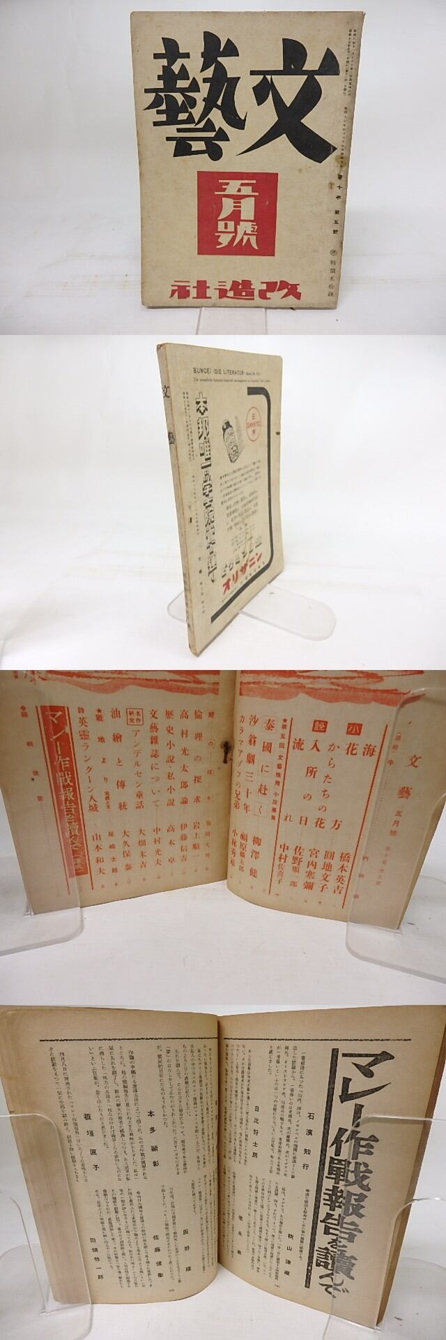 1942 改造社 A5判 マレー作成報告を読んで(諸家) 尾崎士郎「戦地より」 橋本英吉・円地文子・福原麟太郎・小林秀雄・伊藤信吉他 (目録番号:-)