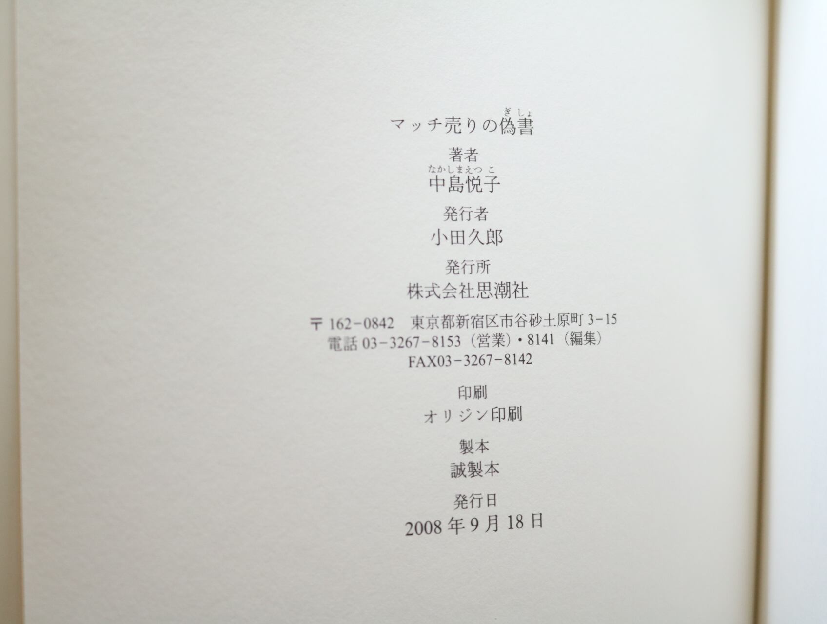 マッチ売りの偽書 初帯 / 中島悦子 [32703]