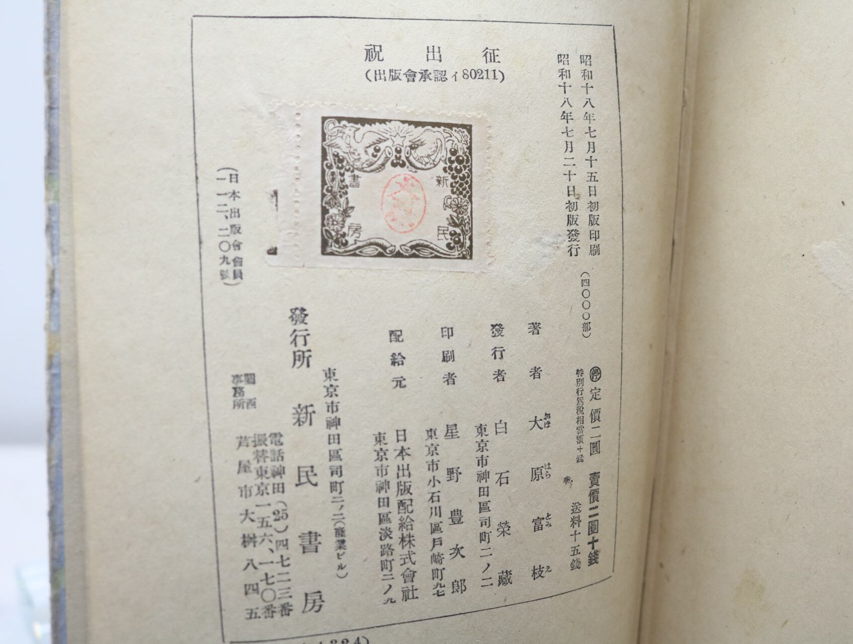 1943 ( 昭和18年 ) 初版・カバ欠裸本 背・表紙イタミ汚 縦縞入青表紙 新民書房 四六判 (目録番号:-)