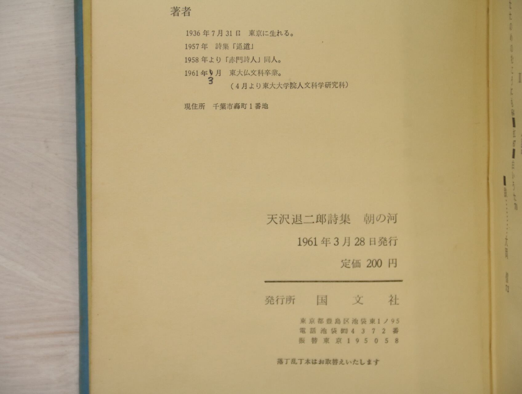 1961 ( 昭和36年 ) 初版・カバ欠裸本 少汚 国文社 四六判 大岡信跋 第二詩集 (目録番号:2-33141)