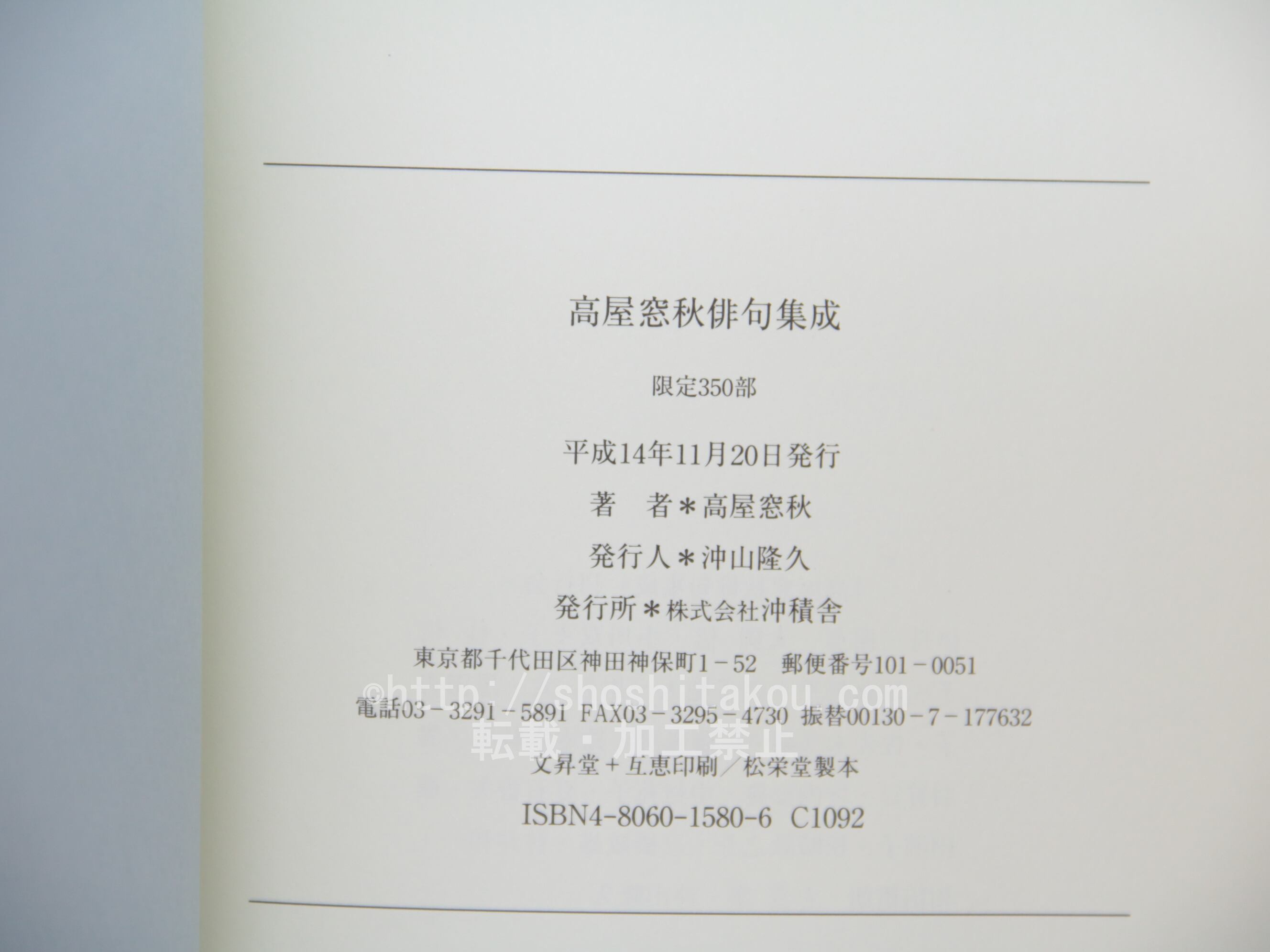 2002 ( 平成14年 ) 沖積舎 A5判 定価10000円+税 (目録番号:3-239)