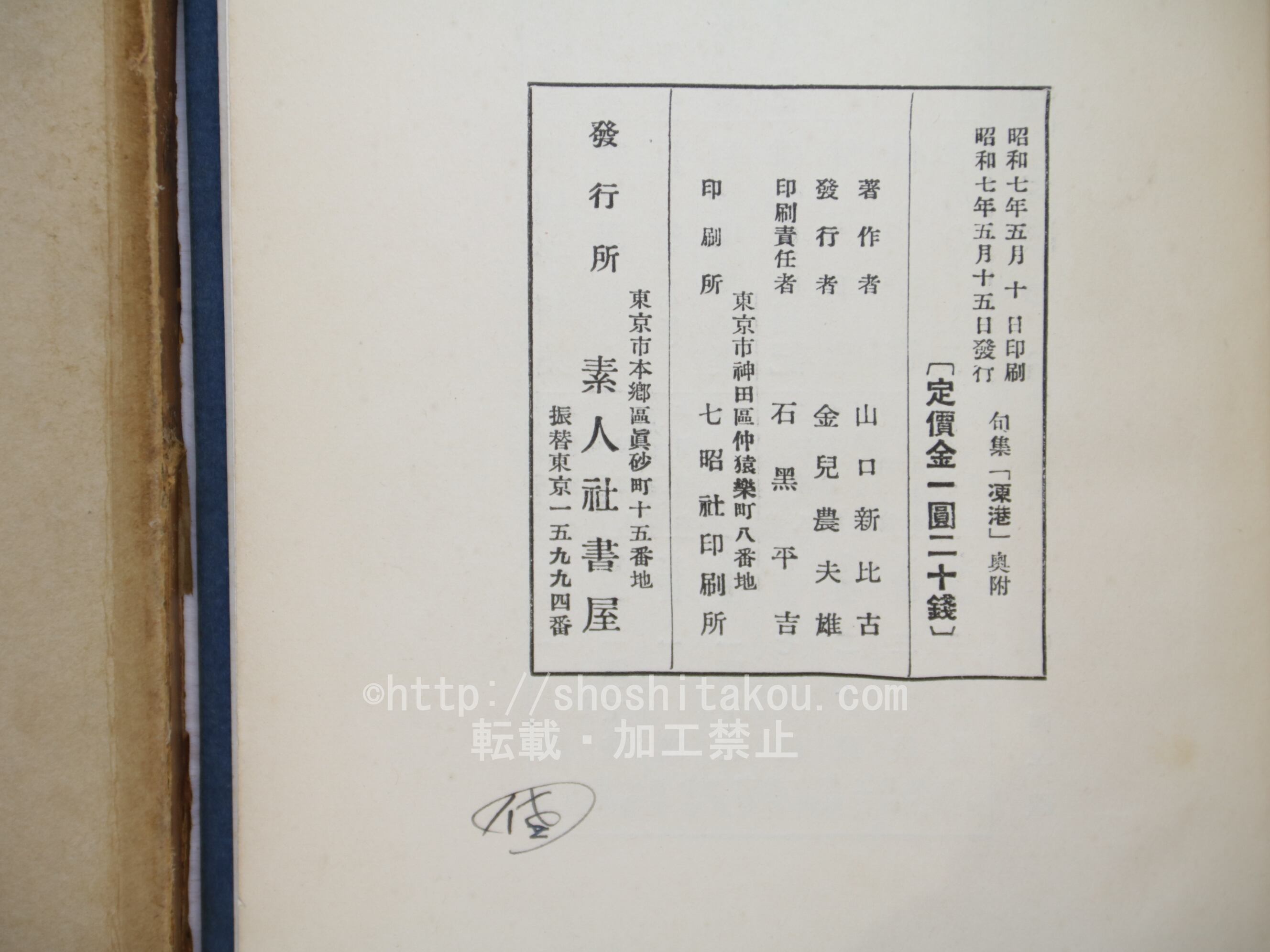 1932 ( 昭和7年 ) 素人社書屋 四六判 第一句集 (目録番号:3-248)