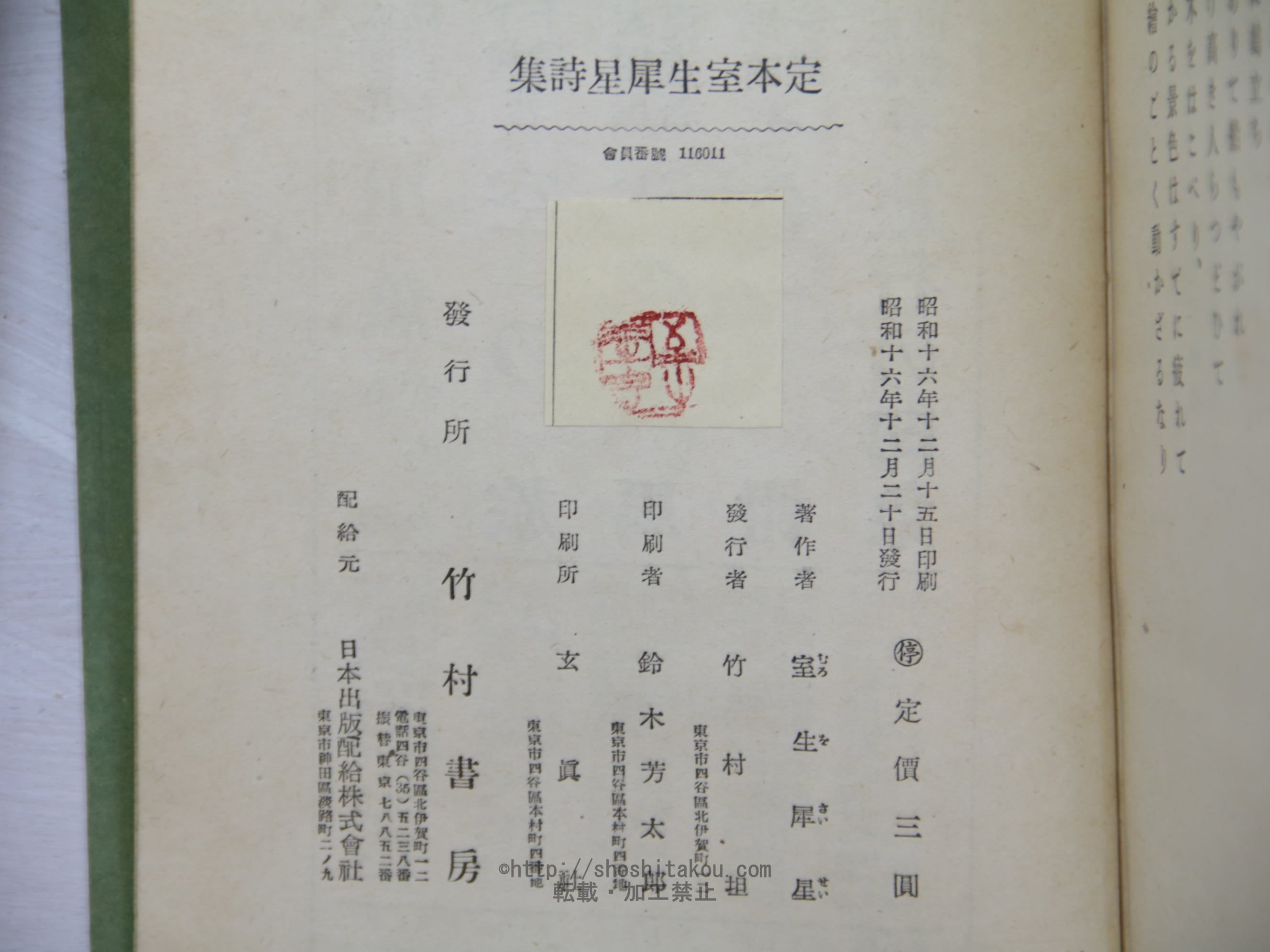 1941 ( 昭和16年 ) 竹村書房 A5判 (目録番号:4-216)