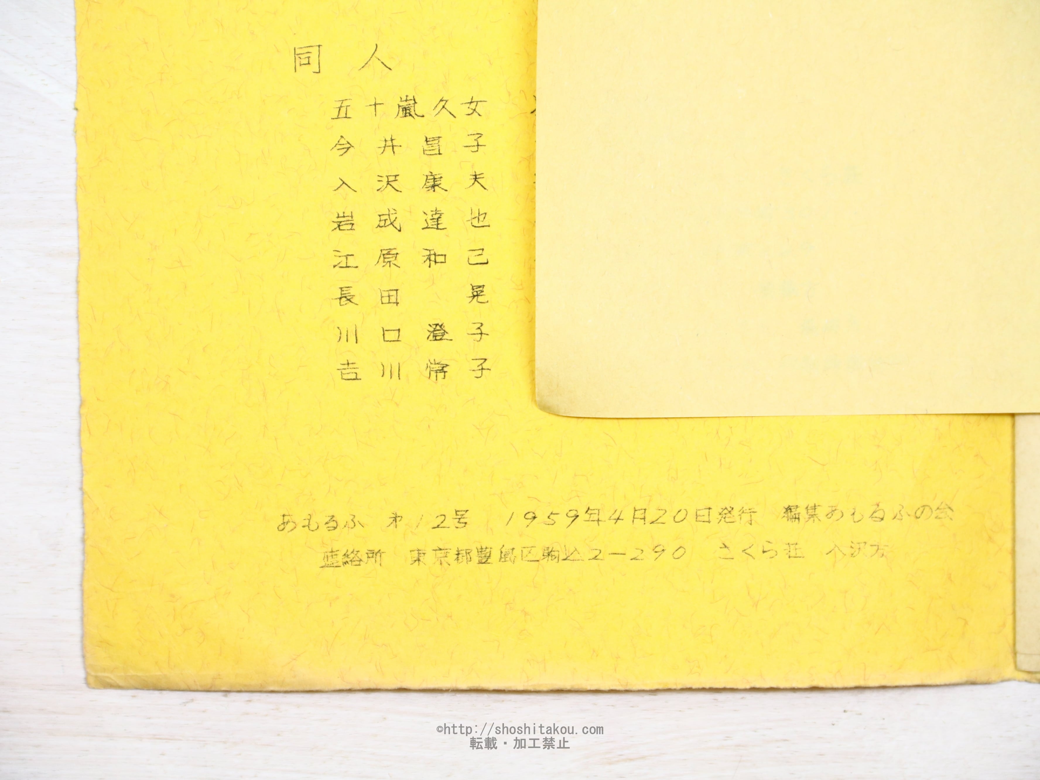 1959 ( 昭和34年 ) 極良好 あもるふの会 四六判 豊島区駒込入沢方発行 本文手書孔版 表紙中塚純二木版 (目録番号:4-50)