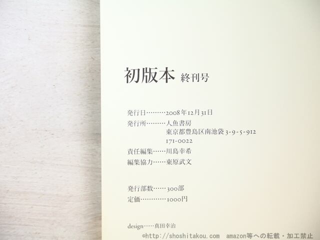![(雑誌)初版本 創刊号-終刊号 全4冊揃 / 川島幸希 編 [34599]](https://baseec-img-mng.akamaized.net/images/item/origin/0b626f7e97948d41c46e482983328536.jpg?imformat=generic&q=90&im=Resize,width=300,type=normal)