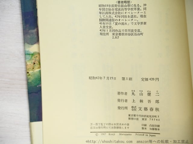 1967 ( 昭和42年 ) 文芸春秋 四六判 芥川賞(当時最年少) (目録番号:5-253)