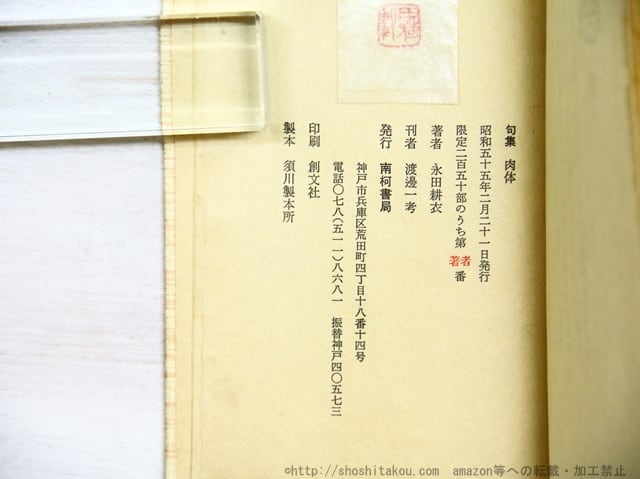 ![句集 肉体 限定250部 毛筆署名入 / 永田耕衣 [35008]](https://baseec-img-mng.akamaized.net/images/item/origin/ea7dd9b82c0d03f121b74f0770d0ce2d.jpg?imformat=generic&q=90&im=Resize,width=300,type=normal)