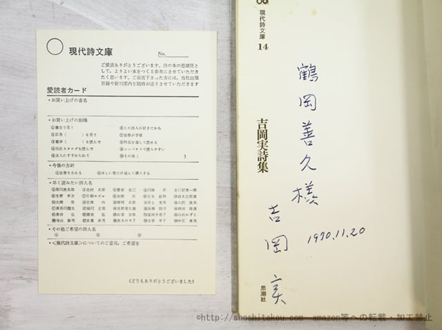 現代詩文庫14 吉岡実詩集 初版 献呈署名入 / 吉岡実 [35352]