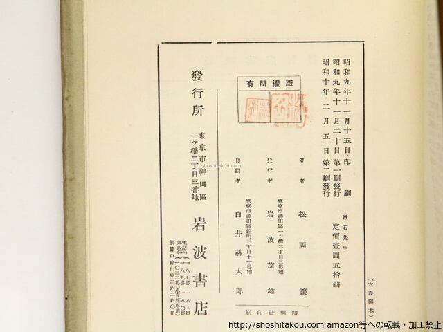 1935 ( 昭和10年 ) 二刷・カバー カバ少イタミ、加えてカバ上端部少欠 三方シミ 岩波書店 四六判    良好(極美・美・良好・並・並下・難) (目録番号:-)
