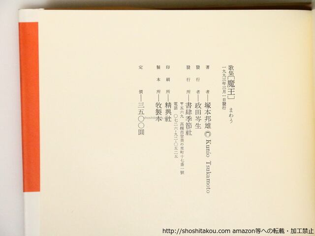 歌集 魔王 毛筆歌署名落款入 / 塚本邦雄 [36949][良好]