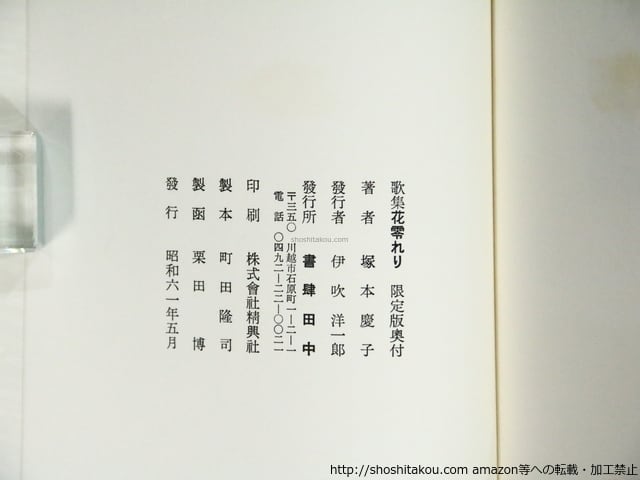![塚本慶子歌集 花零れり 特装本 限定30部 / 塚本慶子 [37182][良好]](https://baseec-img-mng.akamaized.net/images/item/origin/072897f63eaeb242bb861fc496c215f6.jpg?imformat=generic)