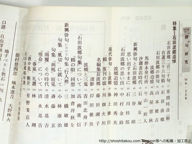 (雑誌)俳句研究 第37巻第2号 特集・石田波郷追悼 / 石田波郷 [37295][並]