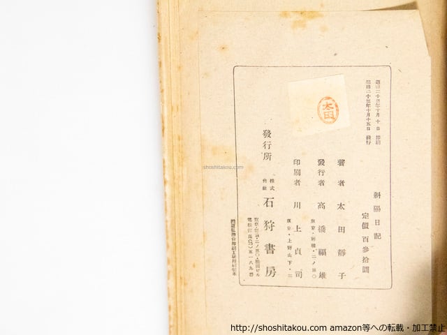 斜陽日記 初版 / 太田静子 花森安治装 [38278][並]
